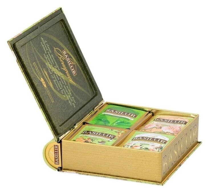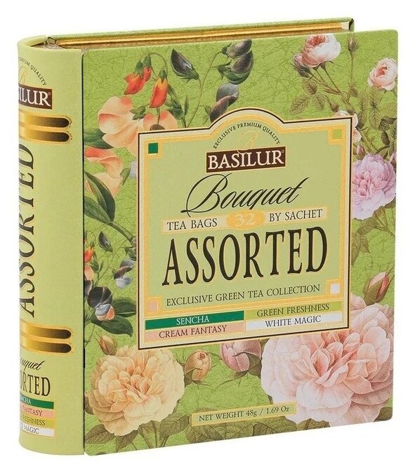 Basilur Bouquet Assorted är en elegant te-bok i plåt fylld med 32 portionspåsar grönt te. Läs mer