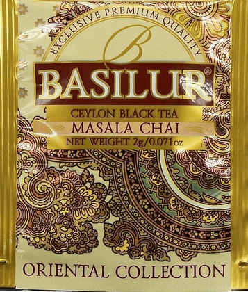 Masala Chai: svart te (85%), kryddor (kardemumma, nejlika, kanel, ingefära, muskot, peppar)1 tepåse per 200–250 ml