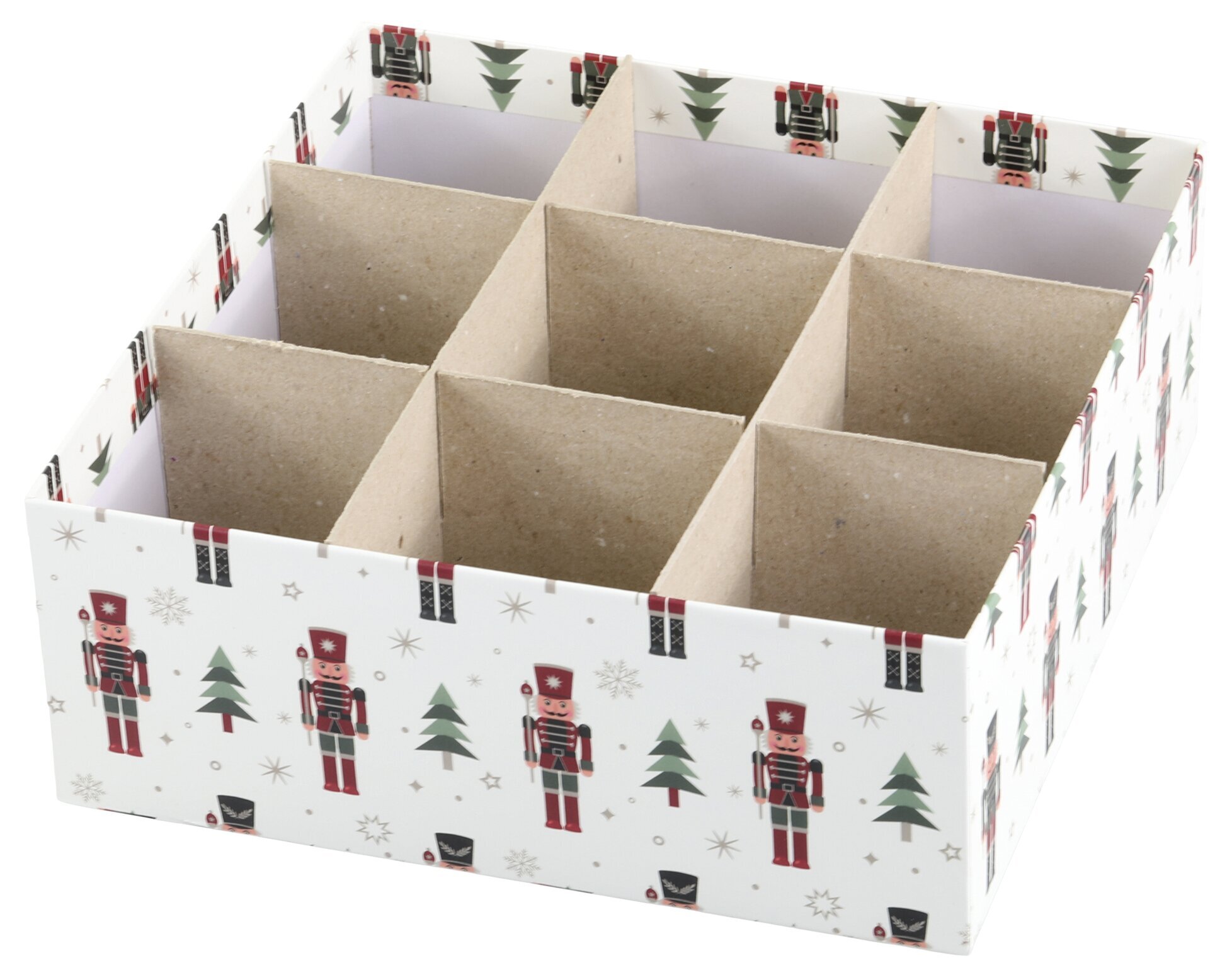 Bild av förvaringsask med nötknäppare och nio fack för jul