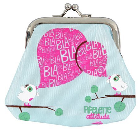 Bilden visar en portmonnä från LyxigaPlåtburkar.se, en butik känd för sitt exklusiva utbud av designprodukter. Portmonnän, som går under namnet Lilou Pipelette attitude, är från varumärket Derrière la porte. Den har en ljusblå bakgrund som ger ett klart och fräscht intryck.