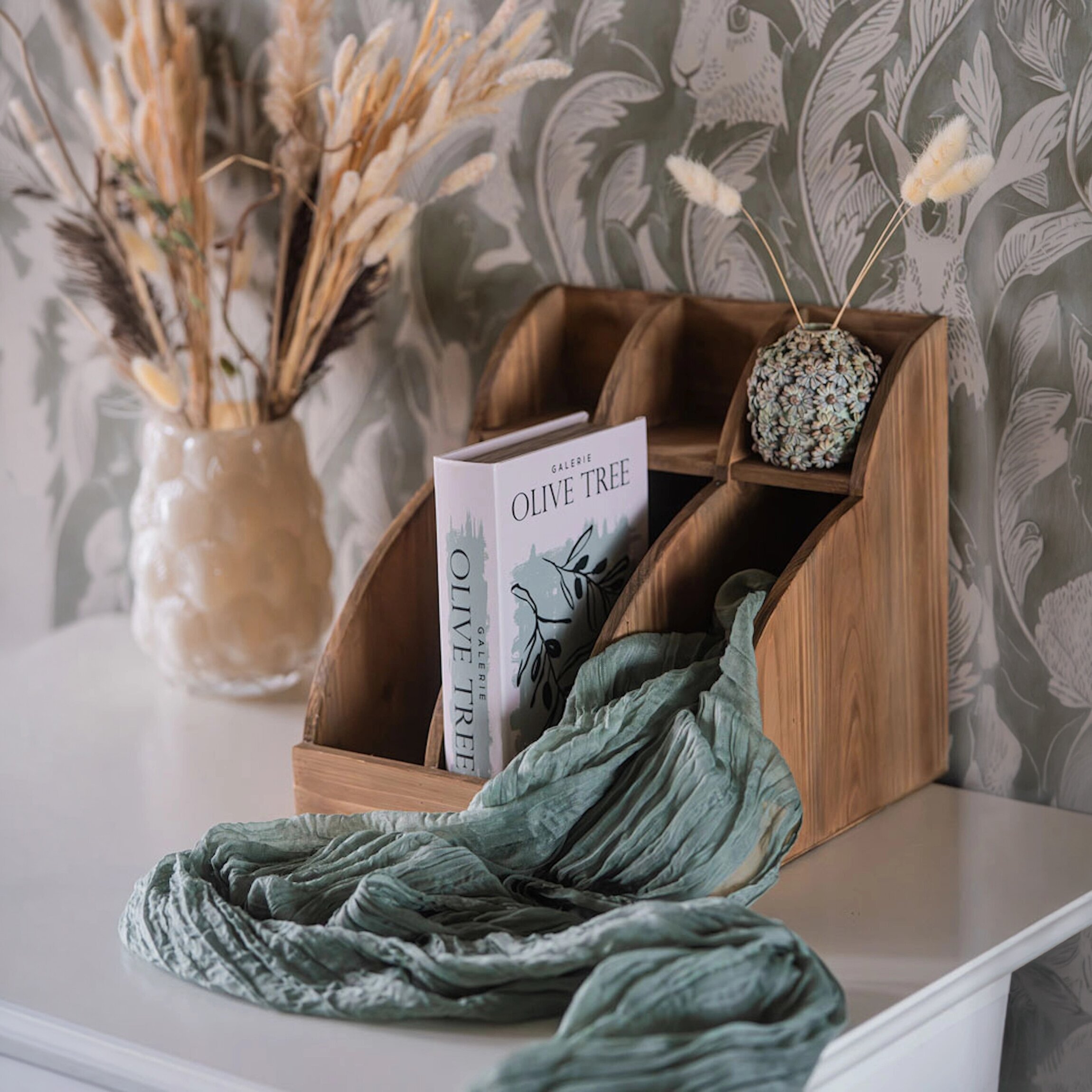 Perfekt för att organisera post, tidningar, recept, anteckningsböcker eller andra småsaker du vill ha nära till hands. De öppna facken gör det enkelt att både sortera och skapa en dekorativ uppställning.