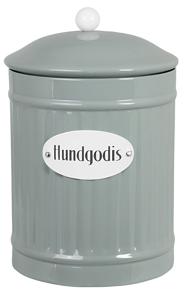 Med texten Hundgodis på framsidan blir den enkel att känna igen och fin att ha stående framme i köket, hallen eller där hundens saker brukar finnas. En charmig detalj för hundägaren som vill kombinera ordning, funktion och stil.