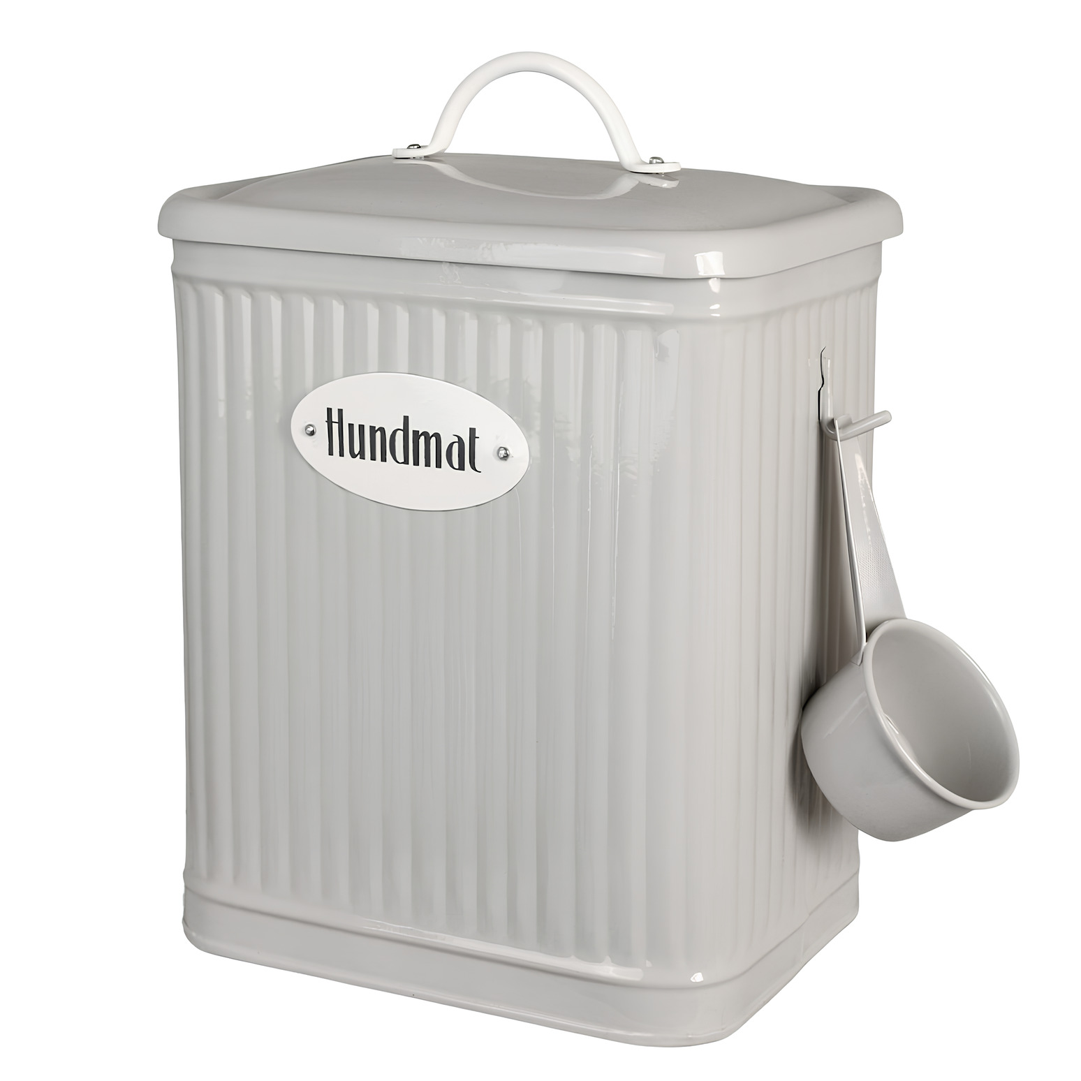 Praktisk och dekorativ plåtburk för förvaring av hundmat, från Strömshaga. Läs mer
